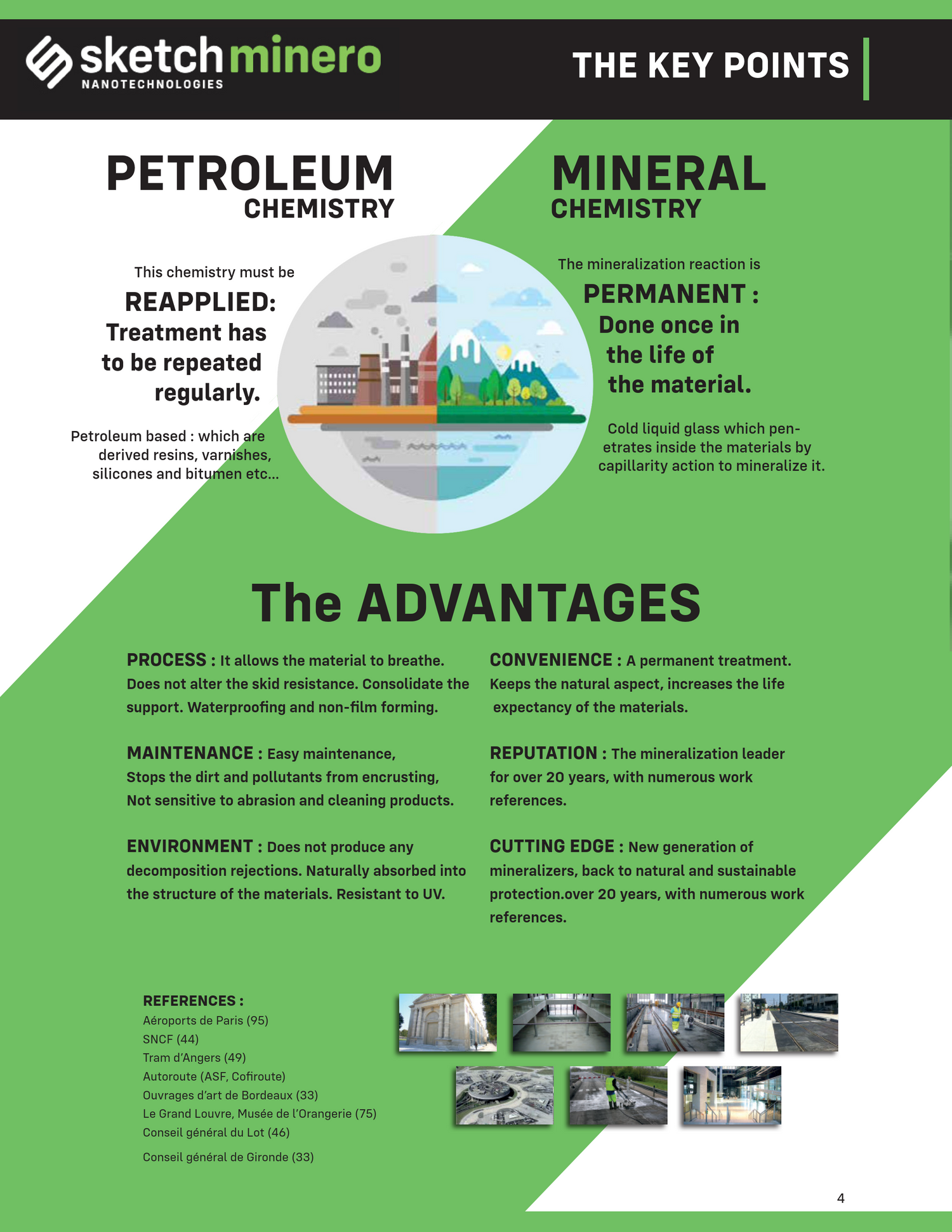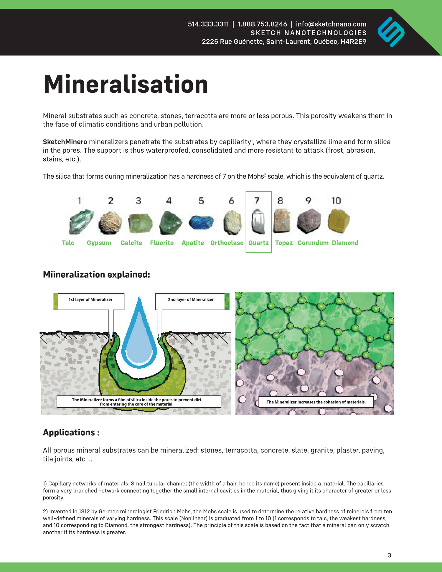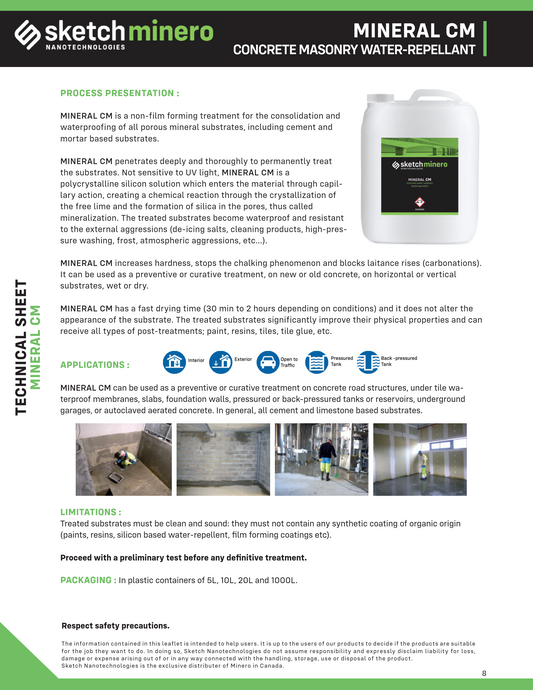 SketchMinero Mineralizers penetrate deep into the material through its capillaries, where they crystallize lime and form silica. This process strengthens the substrate from within, reduces porosity, and increases resistance to frost, stains, abrasion, and weathering.