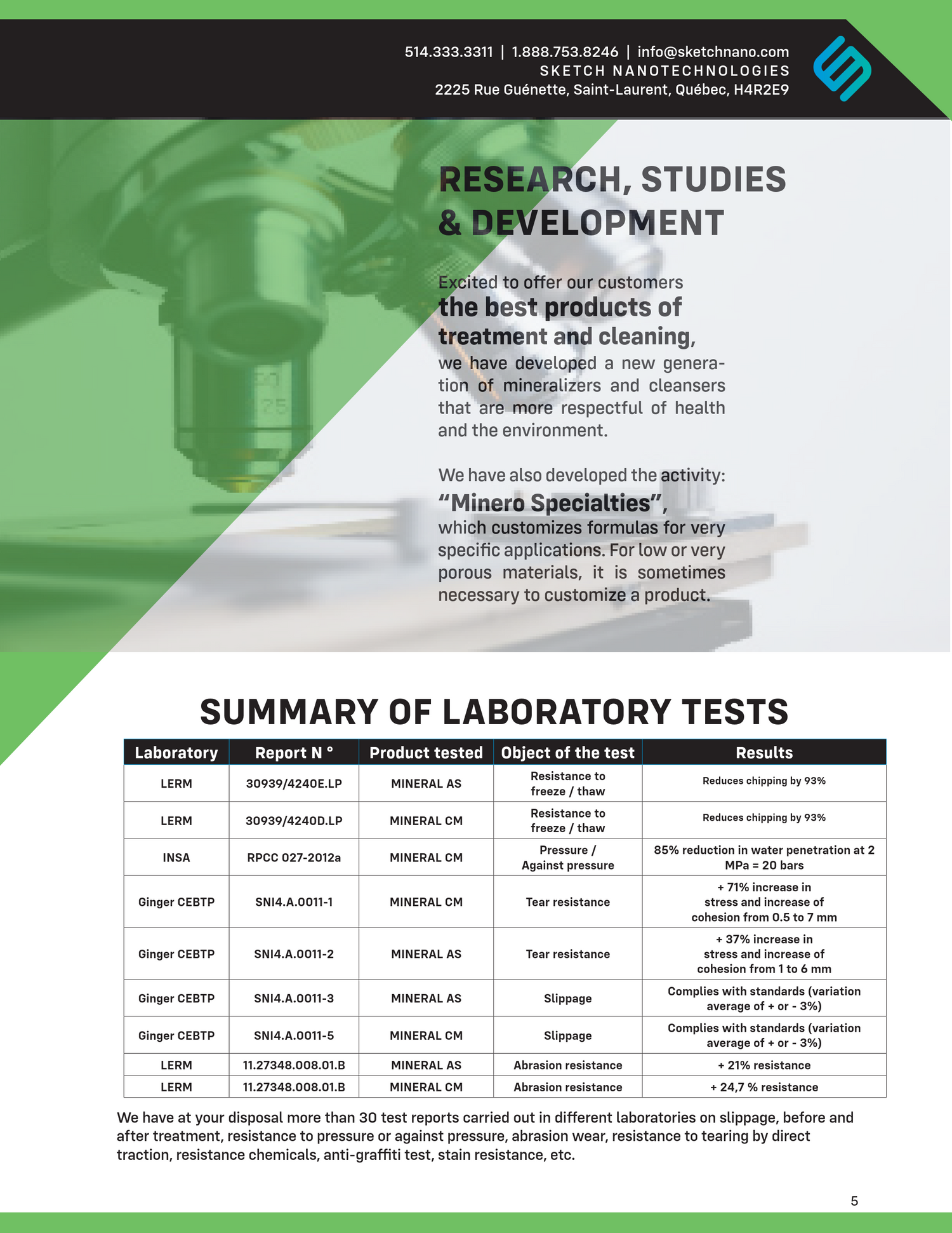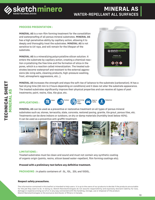 For materials that are very porous or have unique requirements, we offer custom‑formulated solutions. Our “Minero Specialties” division creates tailored products for specific applications where standard treatments are not sufficient.
