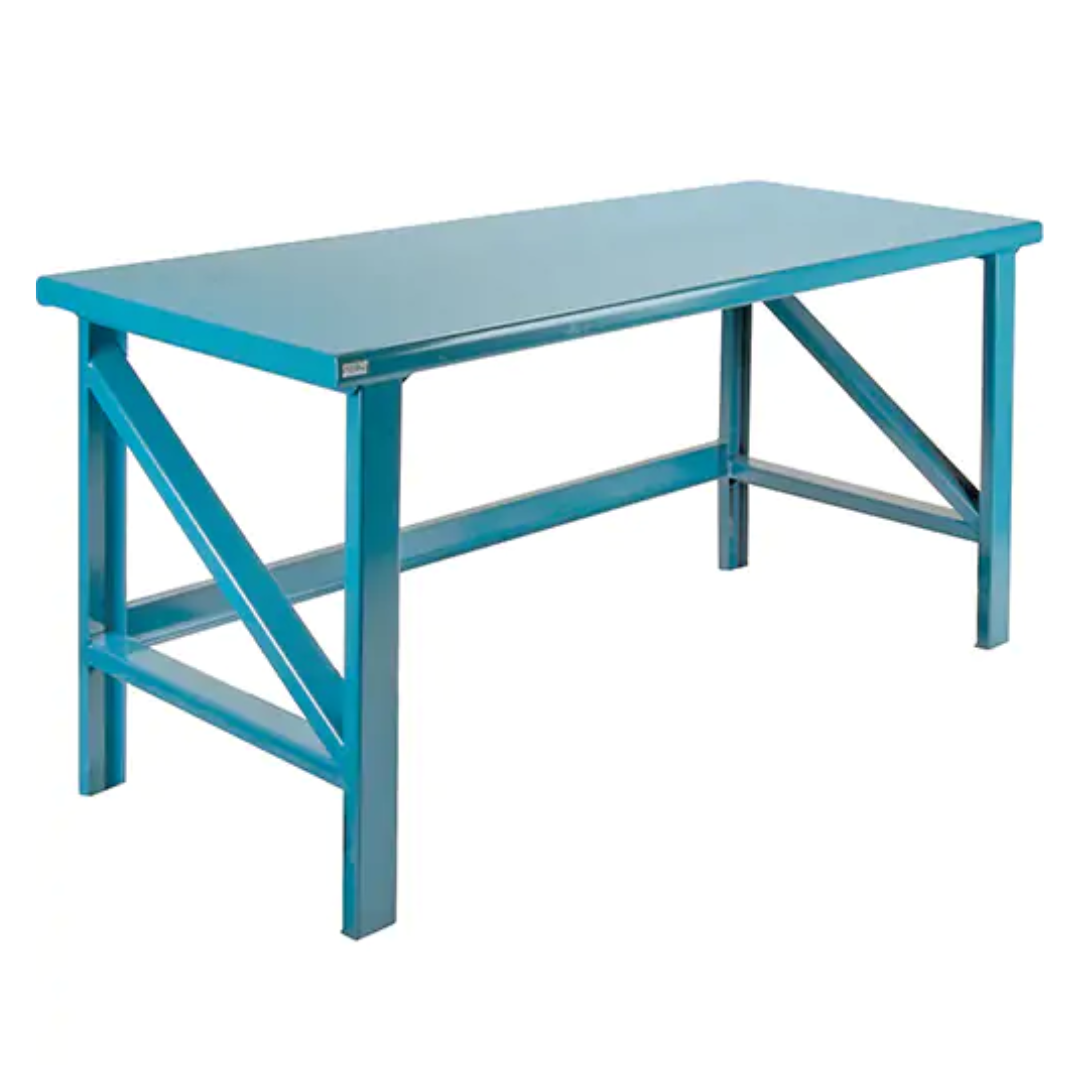 Experience the strength and reliability of the Kleton Heavy-Duty Workbench. Featuring an all-welded construction with a wood-filled 3/16" steel top, this workbench is designed to handle the toughest tasks. The 11-gauge steel legs and stringers provide exceptional support, while the standard bolt-down footplates ensure stability.