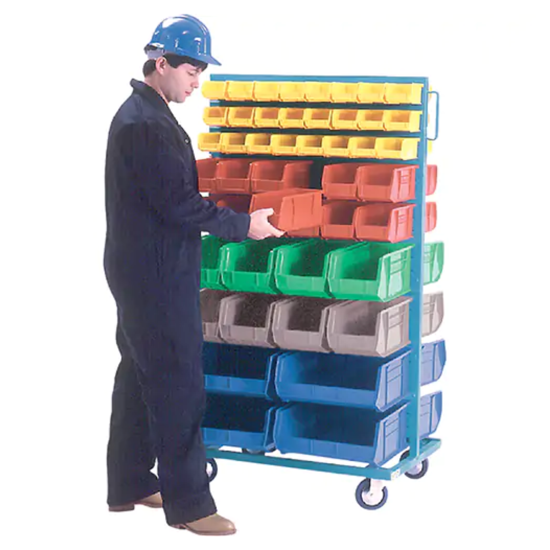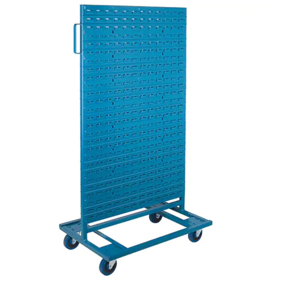 Effortlessly transport and organize small parts with this All-Welded Mobile Bin Rack, built for durability and mobility in demanding work environments. Featuring a double-sided design with six louvered panels, this rack offers maximum storage potential and is ideal for workshops, warehouses, and assembly areas.